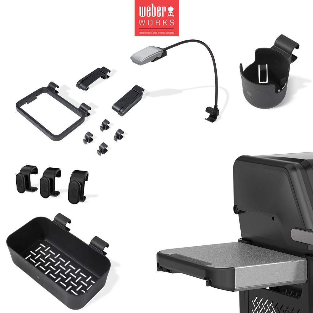 Sfrutta al meglio lo spazio aggiungendo una varietà di accessori Weber Works ad aggancio rapido (venduti separatamente) alle guide laterali.