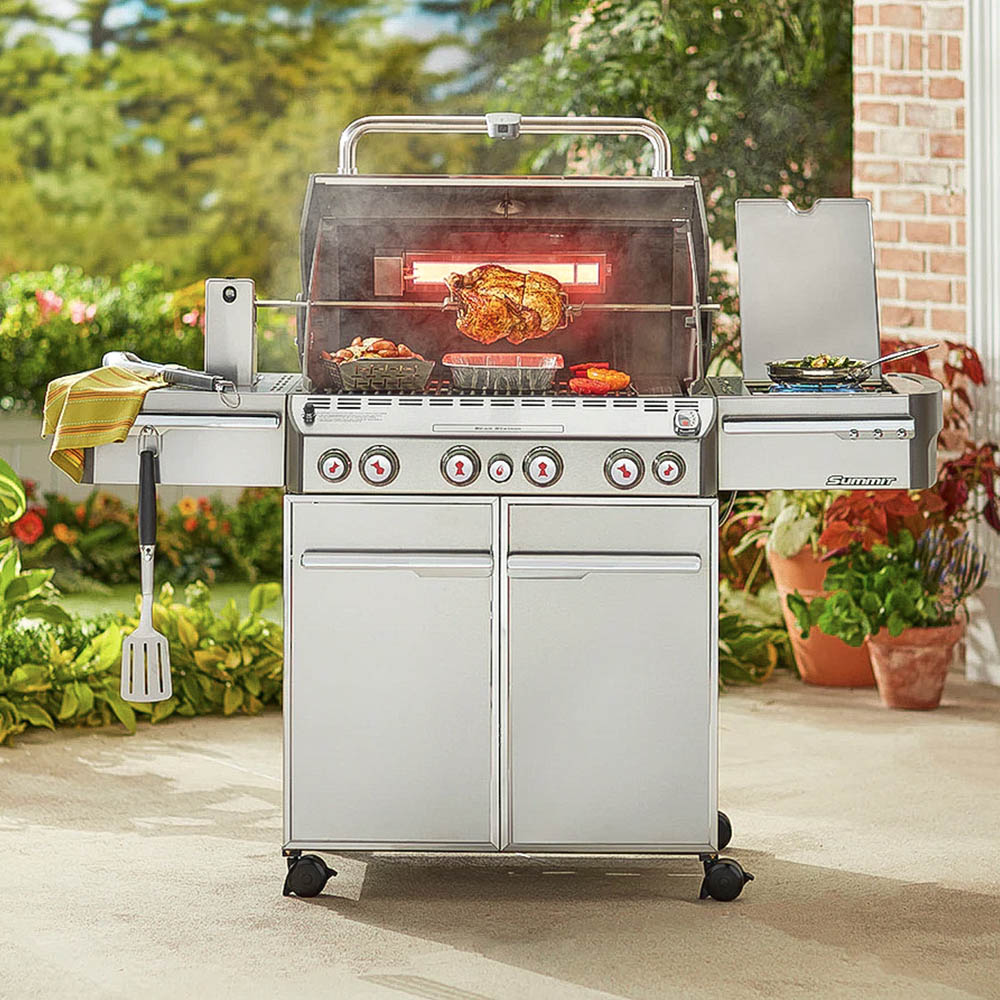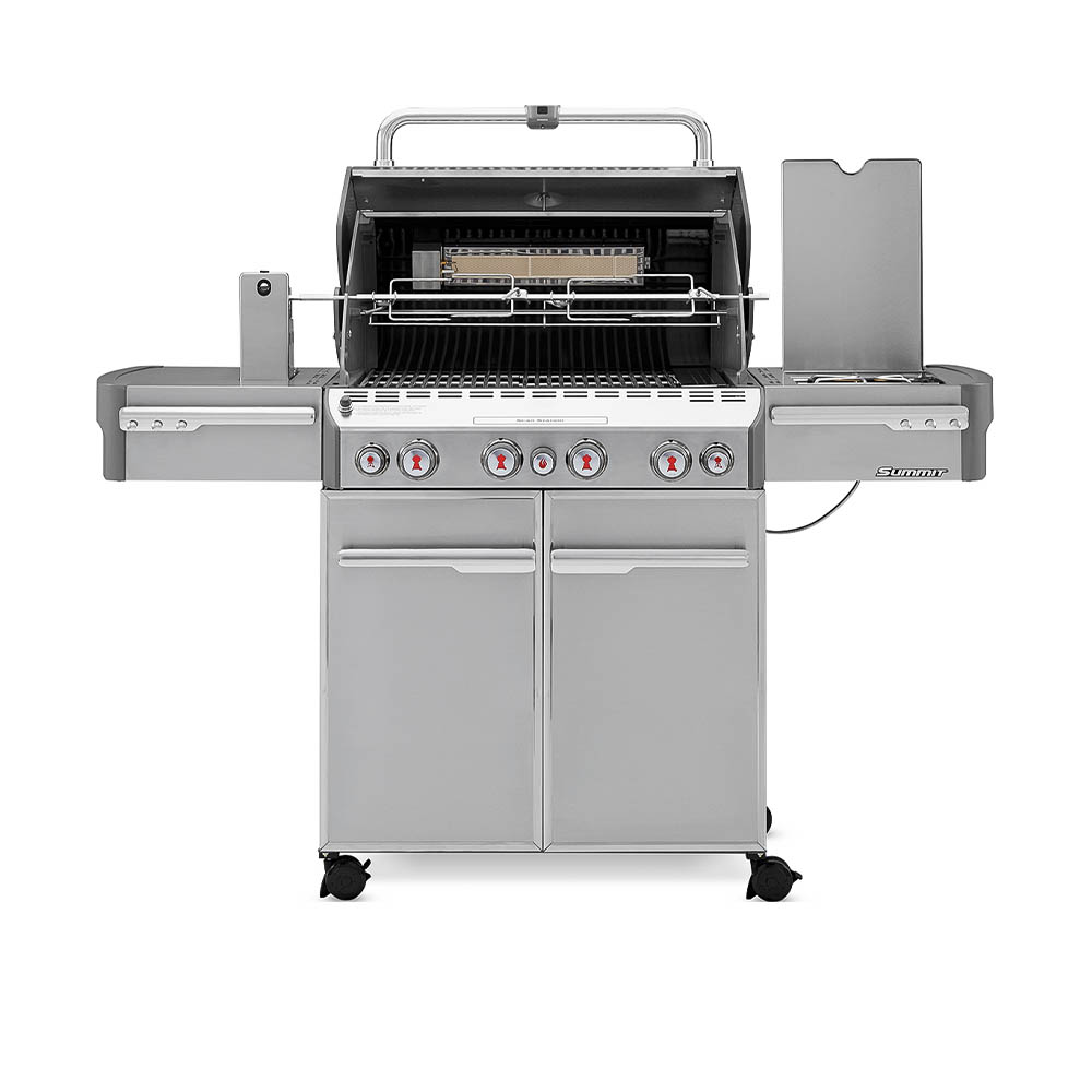 Supera tutte le aspettative e diventa l’eroe del tuo quartiere. Prepara due hamburger sulla griglia o un croccante pollo sul girarrosto, o magari un bel salmone affumicato. Il barbecue a gas Summit® S-470, con i suoi quattro bruciatori, ridefinisce la classica grigliata.