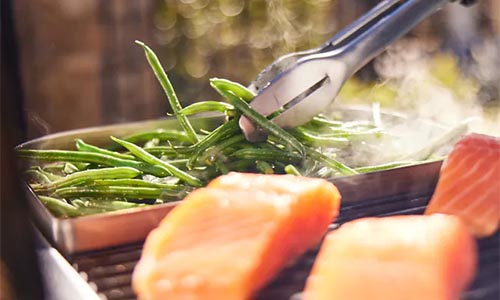 - Griglia alimenti congelati scongelando il cibo mentre il barbecue si preriscalda.