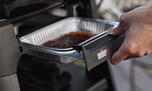 - La vaschetta raccogligrasso con accesso frontale facilita la rimozione e la pulizia.