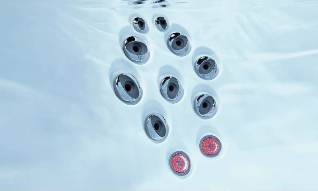 - 41 getti idromassaggio PowerPro® con ghiere in acciaio inox, posizionati e configurati per offrire in ogni seduta diverse e complete esperienze di massaggio.