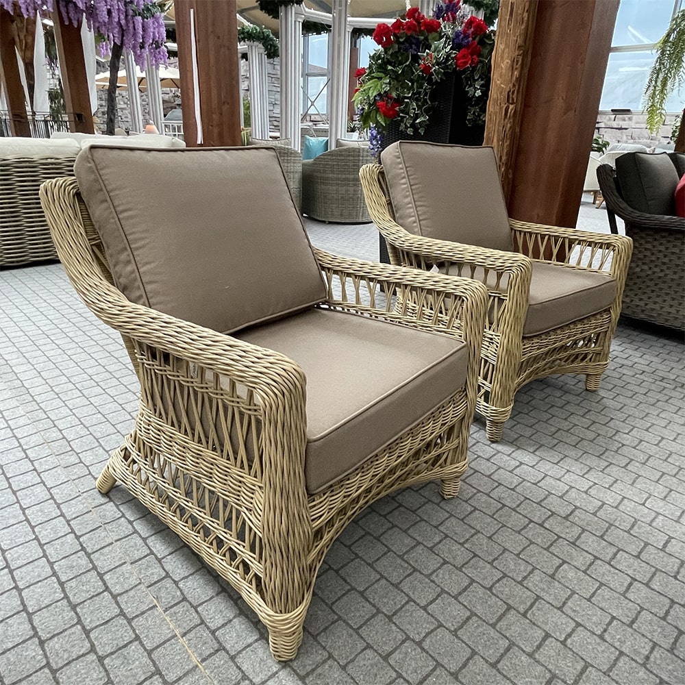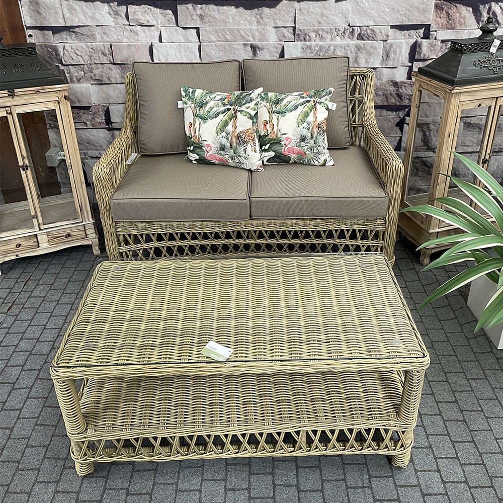 Caratterizzato da un design classico, struttura in alluminio coperta da un intreccio in Rattan sintetico tortora.