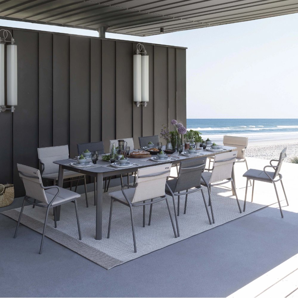 Tavolo Allungabile Ancone in Acciaio e HPL, 220/280 x 108 cm Lafuma – Titane/Ciment