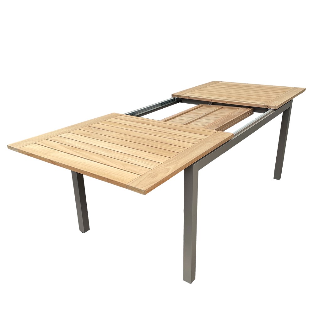 Tavolo Allungabile Taormina in Alluminio e Teak, 160/240 x 90 cm Giardinia Outdoor – Champagne