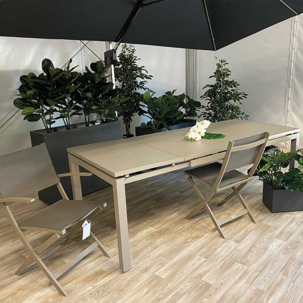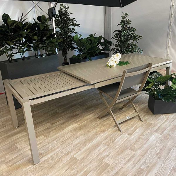 - Tavolo Allungabile in Alluminio Tortora con Piano a Doghe